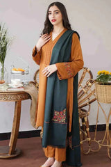 IZEL-3PC KHADDAR EMBROIDERED SHIRT WITH COURTRAI PRINTED SHAWL & TROUSER - NK 14384