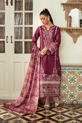 JAZMIN-3PC DHANAK EMBROIDERED SHIRT WITH COURTRAI WOOL PRINTED SHAWL AND TROUSER-BIC-14185