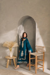 VINTAGE-3PC DHANAK EMBROIDERED SHIRT WITH BAMBER CHIFFON DUPATTA AND TROUSER-14259